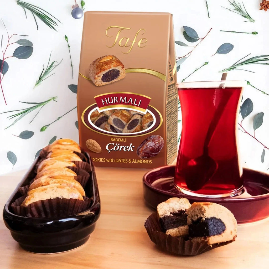 Denna traditionella Mardinkaka är fylld med en rik dadelblandning som ger en naturligt söt och mjuk smak. Kombinationen av dadlar, mandlar och aromatiska kryddor som fänkål och nejlika skapar ett bakverk med både djup och karaktär. Perfekt för dig som uppskattar autentiska smaker och ett bakverk som känns både traditionellt och lyxigt.